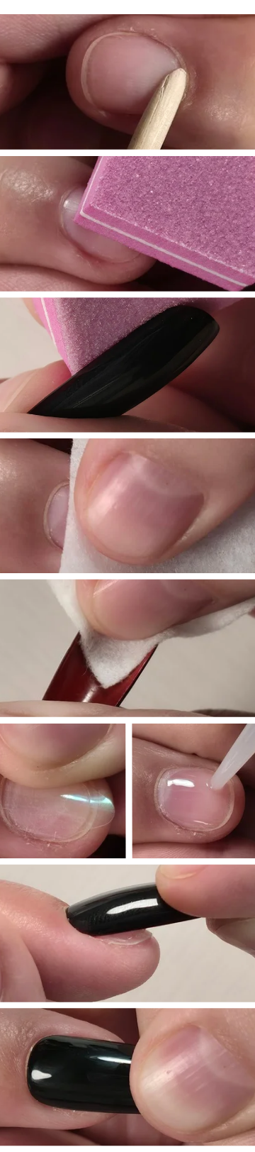 * Don't get your nails wet or use any oils or moisturizers for 1 hour after application for the best adhesion.