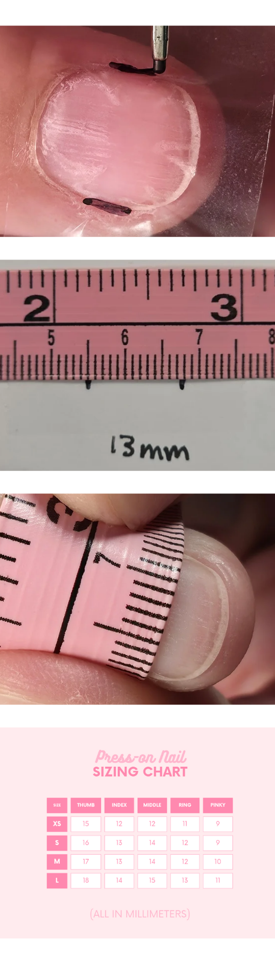 *Make sure to measure your natural nails without any product on them for an accurate fit.